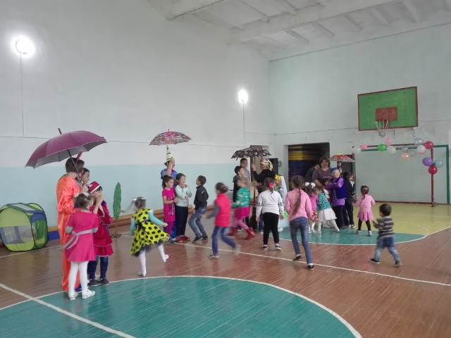 Клоундар, Жалмауыз кемпір (ертегілердің кейіпкерлері) балаларға әр түрлі ойындар, жарыстар өткізді.Соларға белсене қатысқан балалар құралақан қалмай, тәтті сыйлықтарға ие болды. Шара біткен соң балаларға тәтті дастарқанмен шай ұйымдастырылды.
