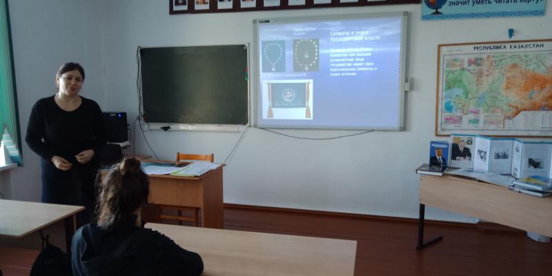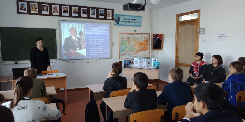 Қазақстан Республикасының Тұңғыш Президенті күнінің қарсаңында мектепте «Современный Казахстан.Урок Лидерства Елбасы ». Бұл іс-шараның мақсаты: Тұңғыш Президентің - Елбасы Н.Ә.Назарбаевтың тәуелсіз Қазақстанның қалыптасуындағы маңызды рөлін ашу.