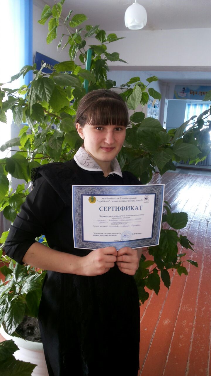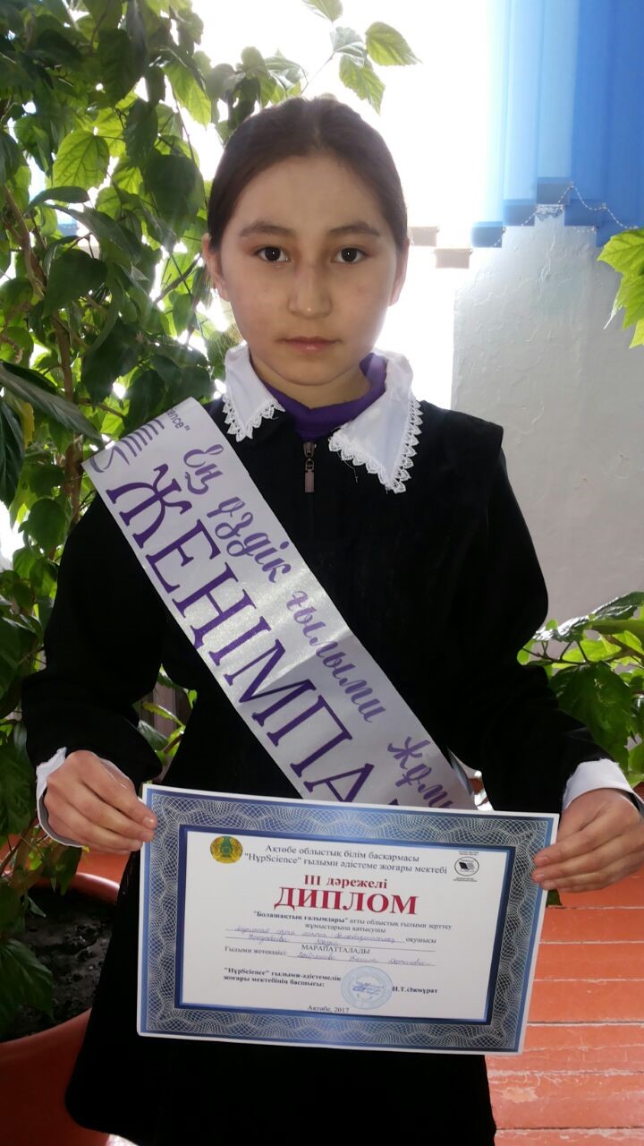 Ученица 5 класса Конусбаева Жадра награждена дипломом ІІІ степени